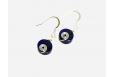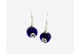Indigo blue glass coin is accented with tiny silver coils. Makes a great addition to your earring collection and matches The Blues beaded necklace.