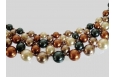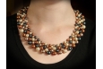 Wow! Classy pearls with a contemporary Renaissance feel for a night out on the town or any other special occasion – or just to dress up your jeans. Three strands of Swarovski pearls in graduated sizes of 6mm, 8mm, and 10mm with seed beads are constructed with right angle weave stitch. The colors in this design are Light Gold, Bronze, Copper, and Tahitian Blue and constructed in a random pattern which provides interest. Decorative component ends add strength to the piece; a gold toggle clasp finishes the piece with pizzazz.