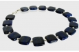 This necklace has a classic style with large lapis lazuli puffed square stones with silver corrugated bead highlights. Lapis lazuli are shot through with small gold flecks and can be dressed up for a statement or down with denim. A simple S-clasp allows for easy fastening.