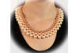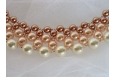 A classic look for any occasion with a contemporary Renaissance feel, this variation of the classic pearl collar consists of three strands of Swarovski pearls in graduated sizes of 6mm, 8mm, and 10mm with seed beads constructed in a right angle weave stitch. This collar is designed in gradient shades of peach – Rose Gold/Peach/Creamrose. Decorative component ends add strength to the piece; a Pave crystal toggle clasp provides more sparkle.