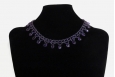 Multiple strands of medium purple amethysts are combined with drops of beveled amethysts in this stunning display of gemstones.