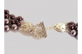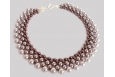 A classic look for any occasion with a contemporary Renaissance feel, this variation of the classic pearl collar consists of three strands of Swarovski pearls in graduated sizes of 6mm, 8mm, and 10mm with seed beads constructed in a right angle weave stitch. This collar is designed in gradient shades of lavender – Maroon/Mauve/Lavender. Decorative component ends add strength to the piece; a Pave crystal toggle clasp provides more sparkle.