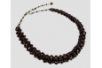 This design is a wire-wrap technique of a strand of 8mm Czech beads surrounded by a circle of 4mm beads and can be gently shaped to fit your neck.  The necklace is finished by an extention strand of beads with a narrow clasp so the necklace can be lengthened or shortened as desired.