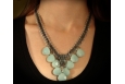 A study in elegance. This design consists of silver-grey square Tila beads with translucent aqua and taupe seed beads stitched in a variation of the St. Petersburg stitch with aqua Amazonite gemstone teardrops. A decorative sterling silver S-Clasp finishes the piece. Design by Hatsumi Oshitani