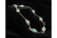 This dainty necklace catches the eye with magnesite gemstones wrapped in silver argentium wire using a herringbone wrap technique. A total of eight 10mm magnesite gemstones are separated by a small sterling silver chain with a sterling silver magnetic clasp. Magnesite looks much like turquoise - but not at a turquoise price.