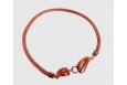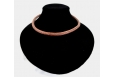 Viking Knit is an ancient Viking method used to make ornamental embellishment by weaving metal wire to form tubes. This is a more complex double weave which adds density and is visually striking, yet simple. The piece is finished with a designer leaf clasp* which can be worn in front as a focal or in back so the intricate weave catches the eye. The copper wire has been sealed to retain its brightness and avoid darkening patina and discoloration of skin.